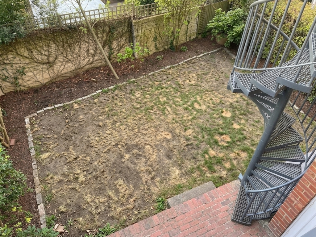 Düsseldorf, Innenstadt: Ein tiefliegender Garten auf Kellerniveau, umschlossen von hohen Häuserreihen. Die Realität vor Ort? Kaum Licht, dauerhafte Feuchtigkeit und keine Chance für natürlichen Rasen. Hier haben wir gemeinsam mit dem GaLaBau-Unternehmen des Kunden eine dauerhafte Lösung geschaffen.