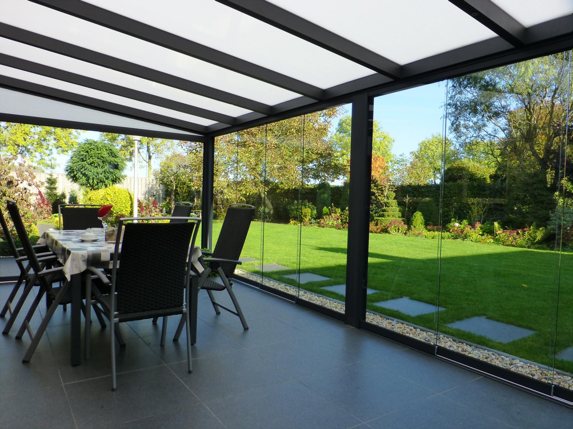 Individualität: Ob klassisch mit Polycarbonat oder hochelegant mit Echtglas – Deponti bietet für jeden Geschmack die passende Systemlösung.